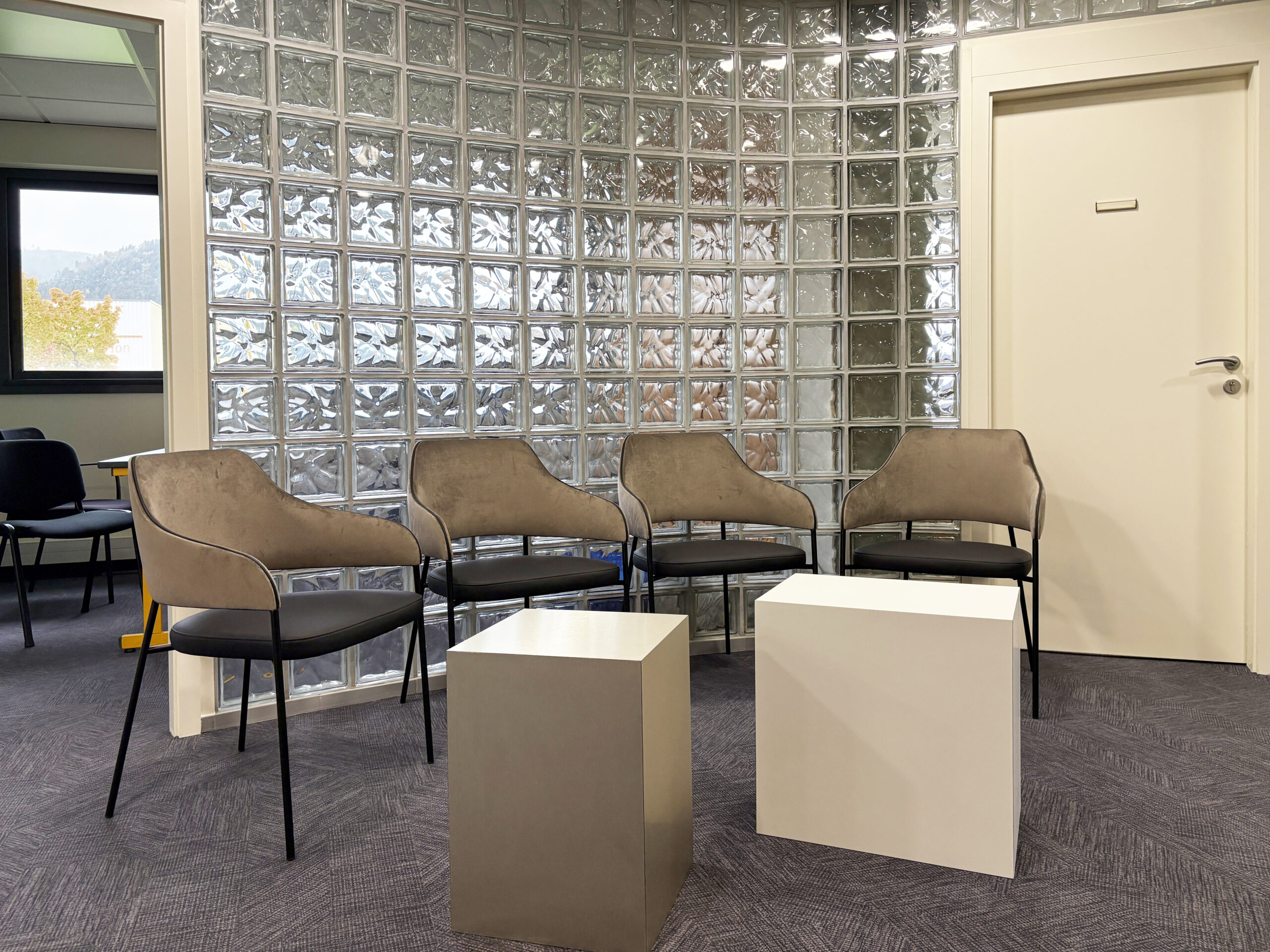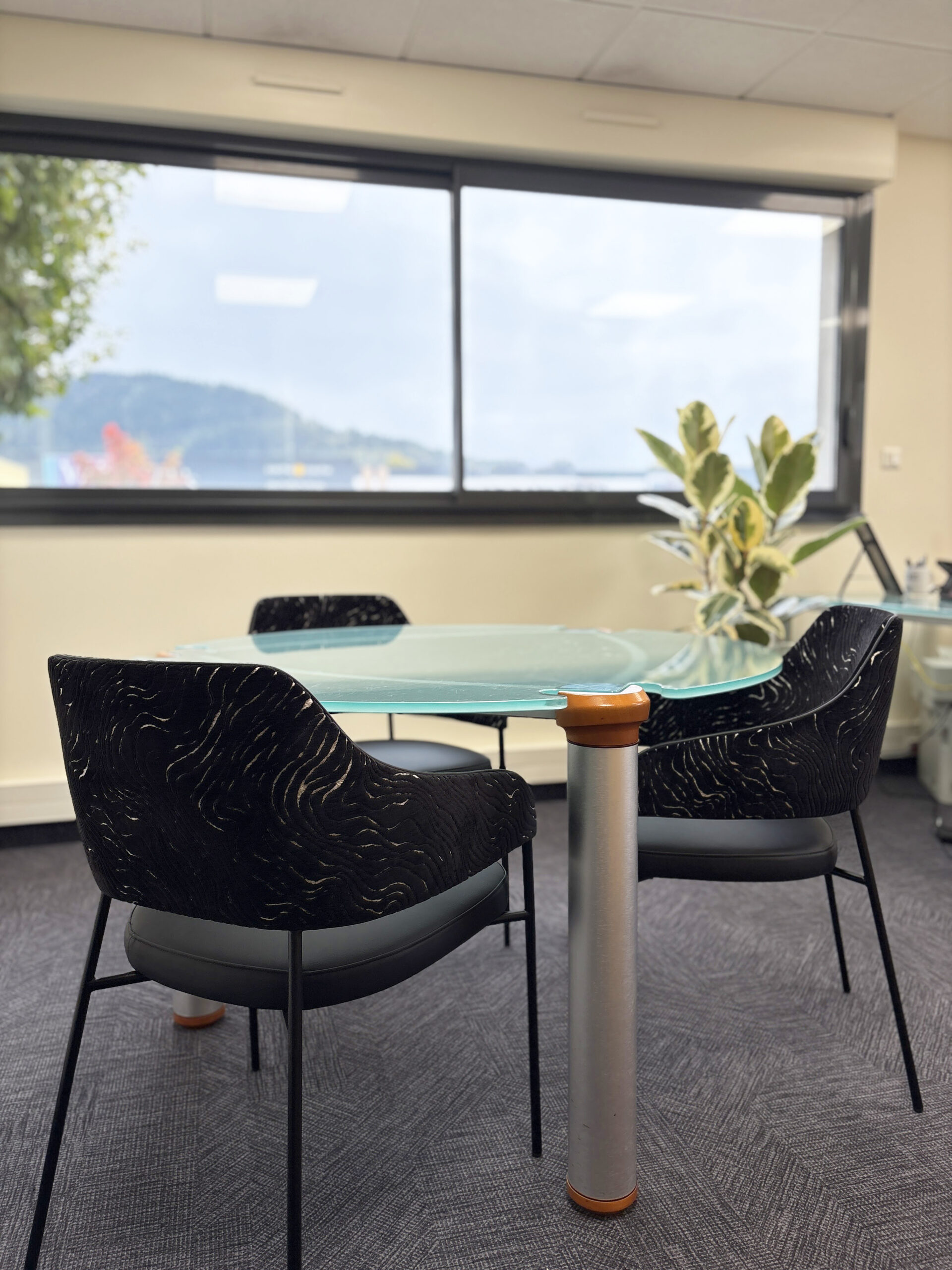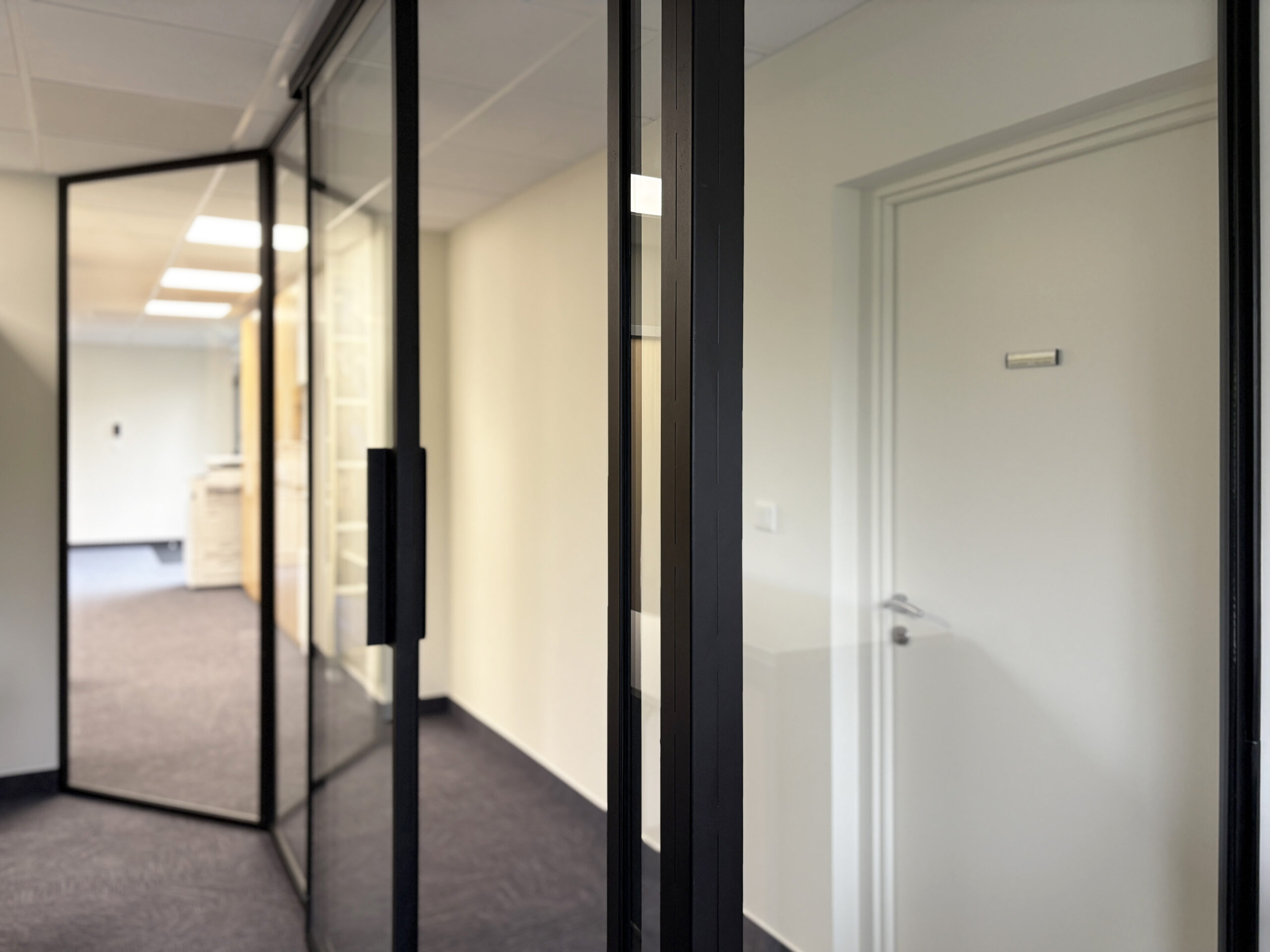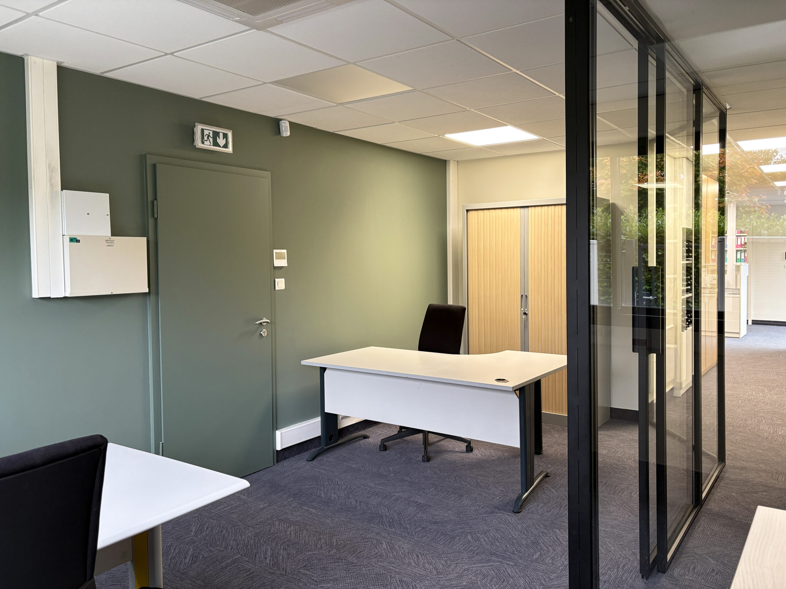 Rénovation complète de l’accueil et des bureaux, dont la création d’un bureau vitré sur mesure.