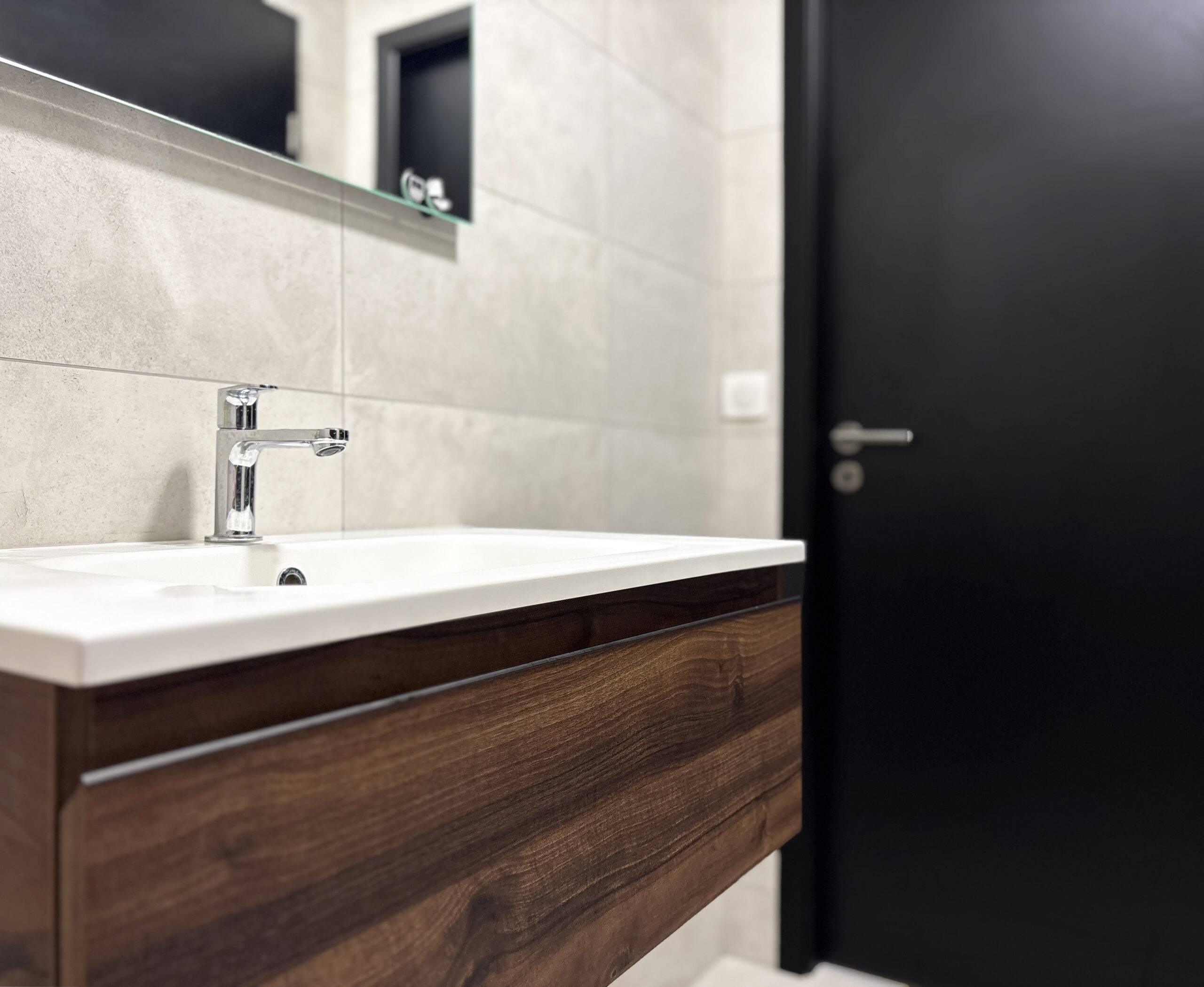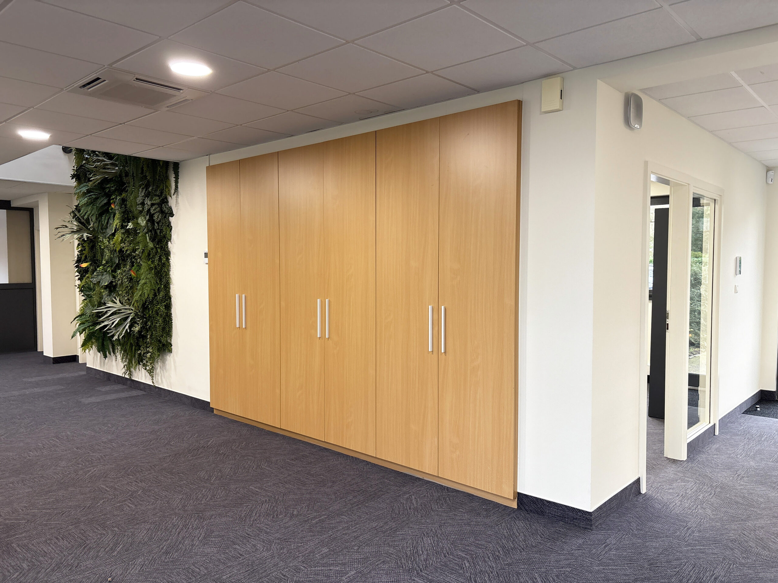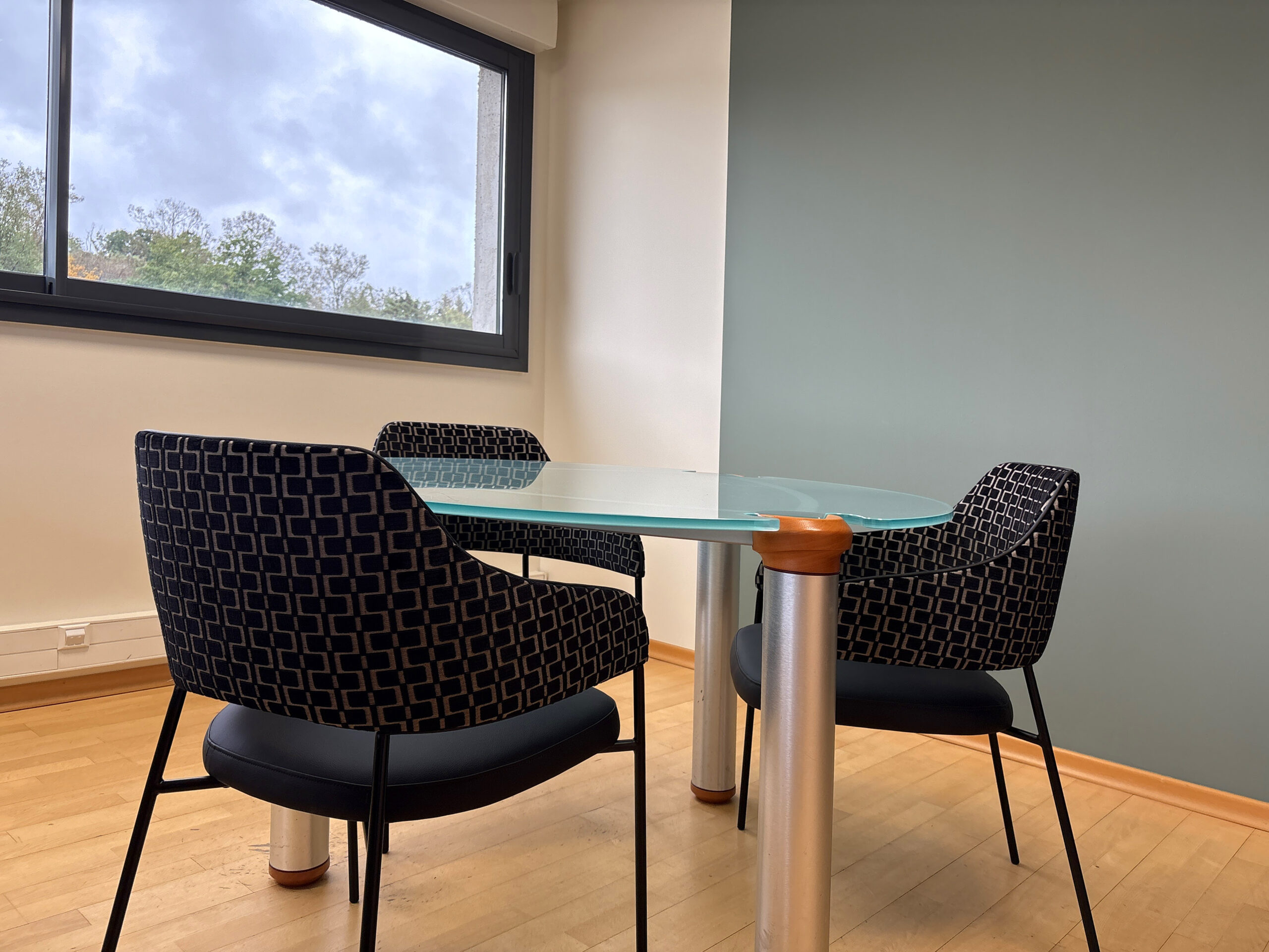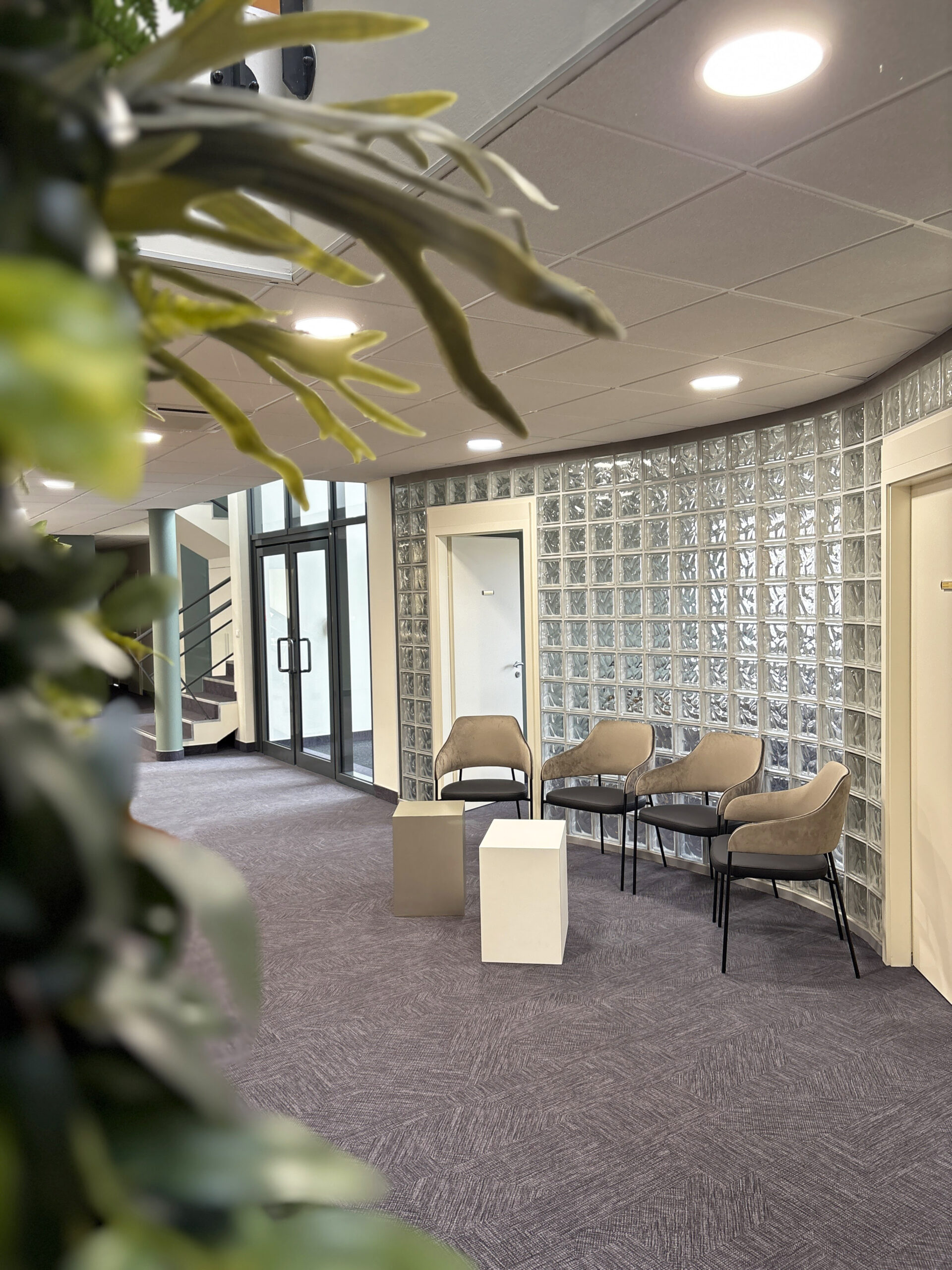 Rénovation complète de l’accueil et des bureaux, dont la création d’un bureau vitré sur mesure.
