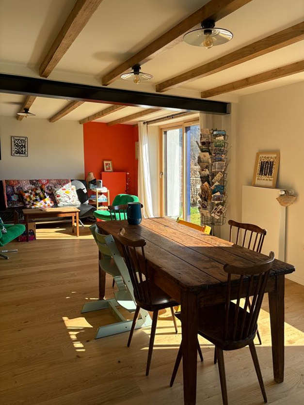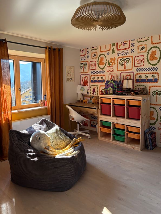 Aujourd’hui, cette maison de famille devient un lieu de vie chaleureux, vivant et résolument fonctionnel. De la cuisine conviviale au séjour, en passant par les chambres, chaque espace a été conçu comme un univers à part entière : lumineux, confortable, et rythmé par des choix de couleurs affirmés qui apportent de la personnalité et de la joie au quotidien.